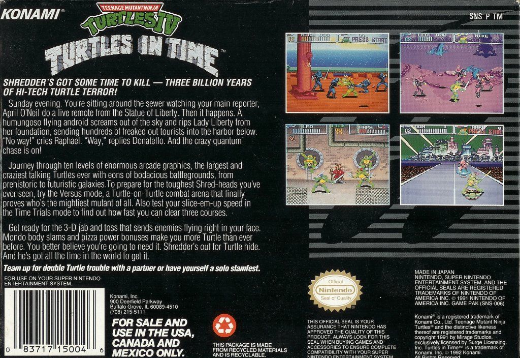 Teenage Mutant Ninja Turtles IV Turtles In Time Super Nintendo